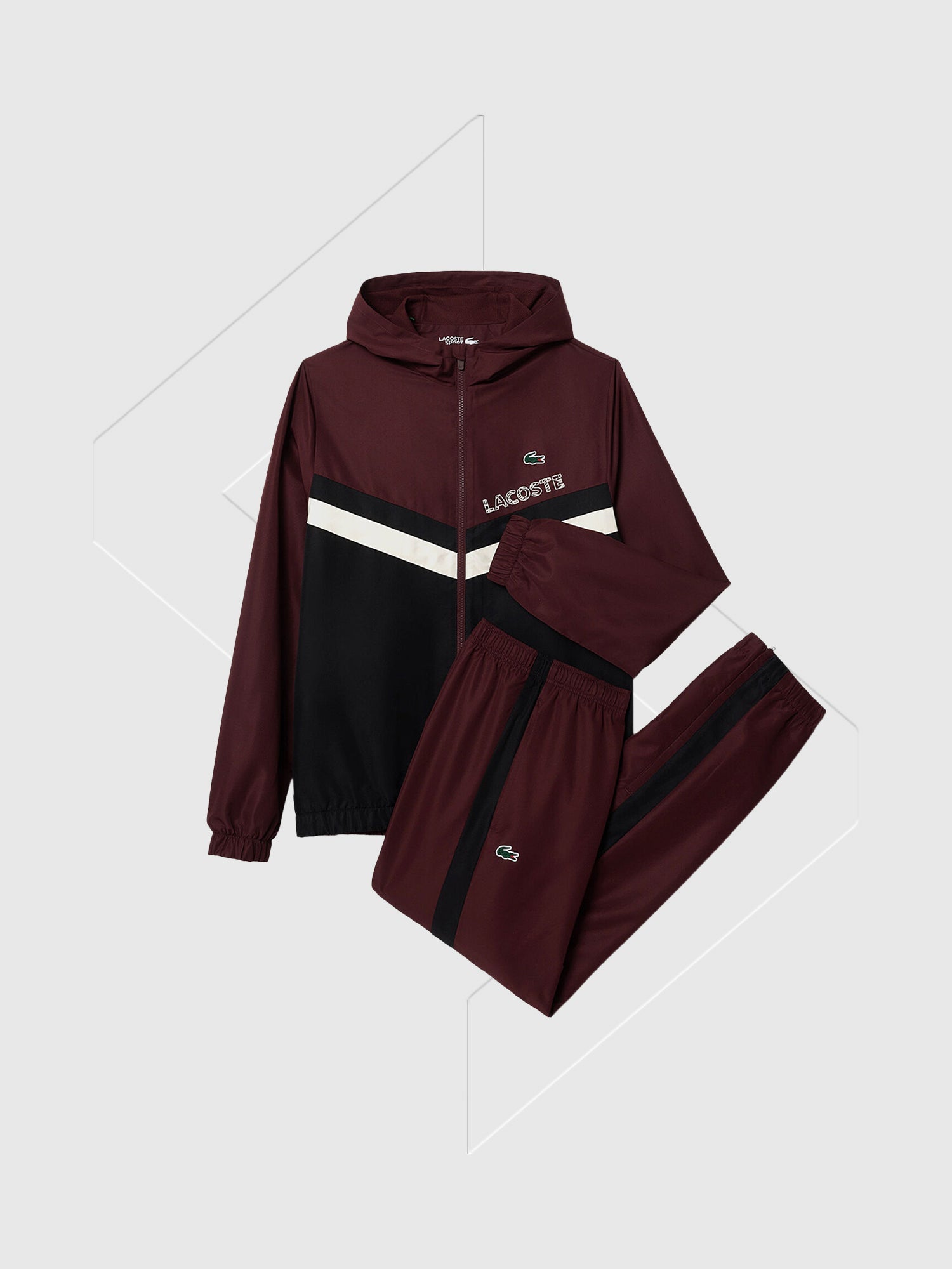 Lacoste Diamond Taffeta Tennis Tracksuit Set Bordeaux/Black/White