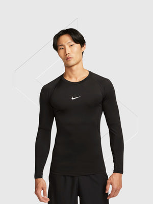 Lightweight yet durable, the Nike Pro Long-Sleeve Top is built from a premium polyester and elastane blend giving you the flexibility, breathability, and sleek look to train with confidence.