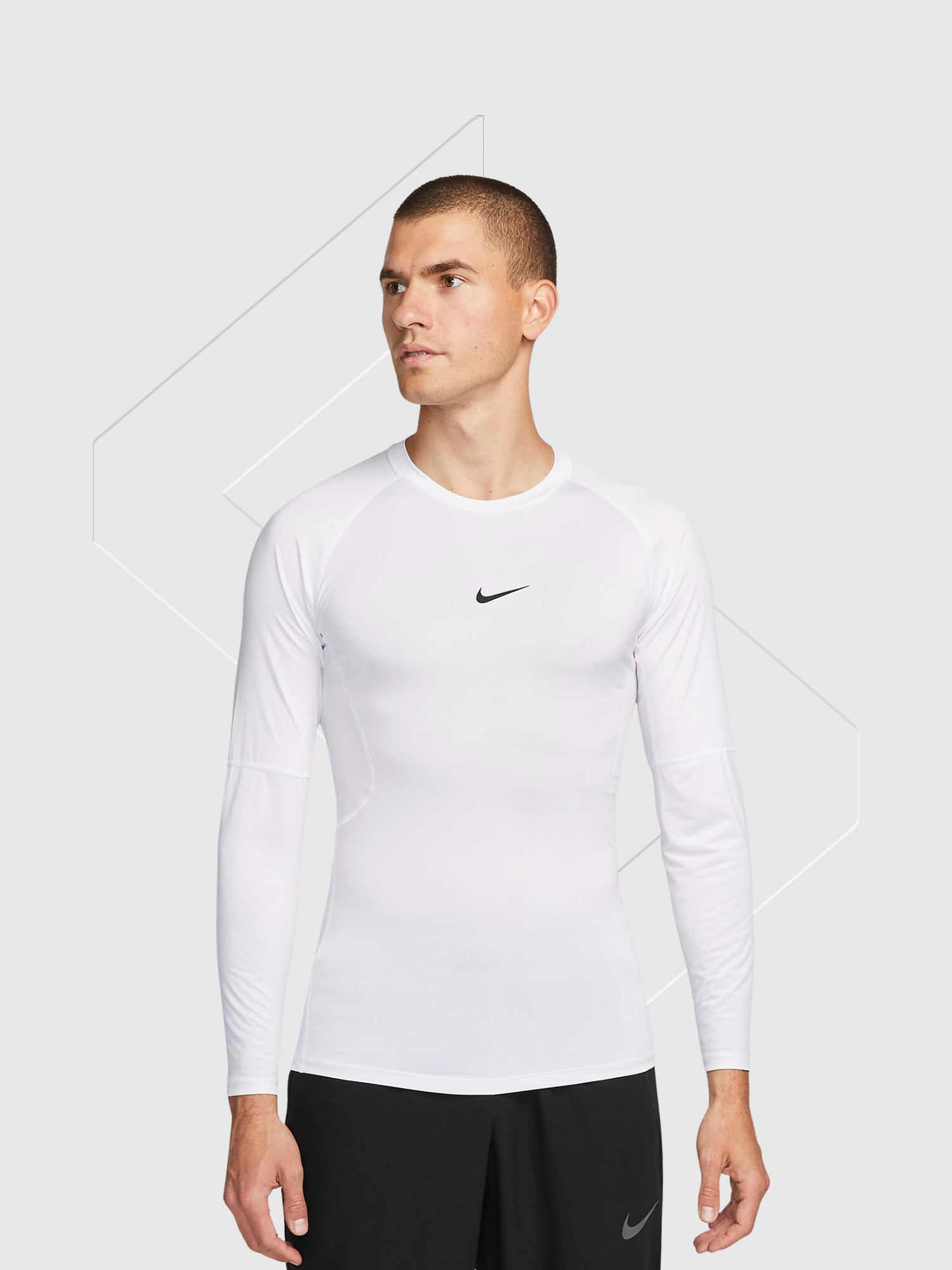 Lightweight yet durable, the Nike Pro Long-Sleeve Top is built from a premium polyester and elastane blend giving you the flexibility, breathability, and sleek look to train with confidence.